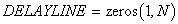 The Matlab version utilizes the matrix operations that the Matlab environment offers to implement the delay lines and fractional delay filters. It turns out that, when properly arranged, the finger hole filtering and the interpolation and deinterpolation operations can be carried out with just a few matrix and vector operations. For example, a delay line of length N can be conveniently expressed as a vector with N components. Using Matlab notation, an empty delay line is constructed like this: