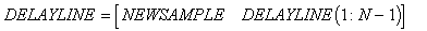 The first and last components of the vector represent the most recent and the oldest sample in the delay line, respectively. Once initialized, the unit time step operation and insertion of a new sample into the delay line is straightforward: